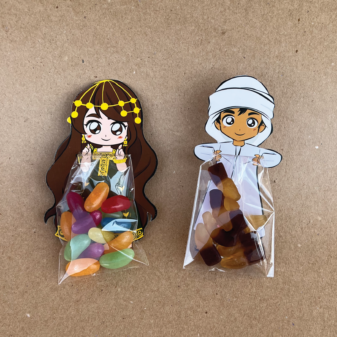 الكيس الواحد يتكون من 10 أولاد و 10 بنات و ياتي مع الاكياس البلاستيكية الصغيرة