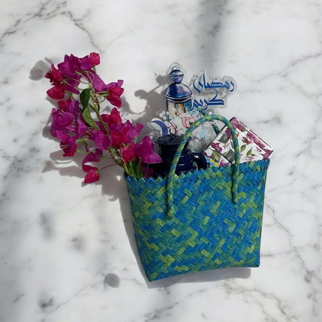 السلة الجميلة + فانوس رمضان + تغريسة للكيك أو القيمات + توزيعة تمر أخلاص + المبخر