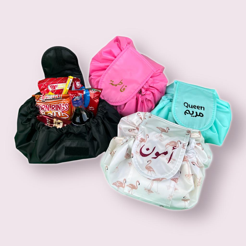 شنطة القرقيعان مع كتابة الاسم