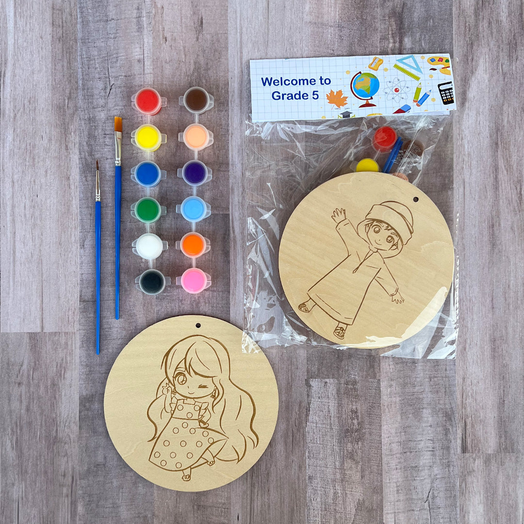 للمدرسة لوحة خشبية و ألوان مائية